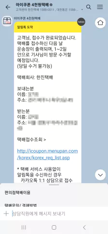 예약하면 그 다음날 바로 택배시가님께서 연락 문자를 보내시기때문에, 더욱 빠르고 확실하게 취소하실 수 있습니다.