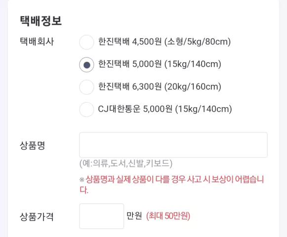 보내시는 택배 크기 잘 맞추셔서 보내세요.